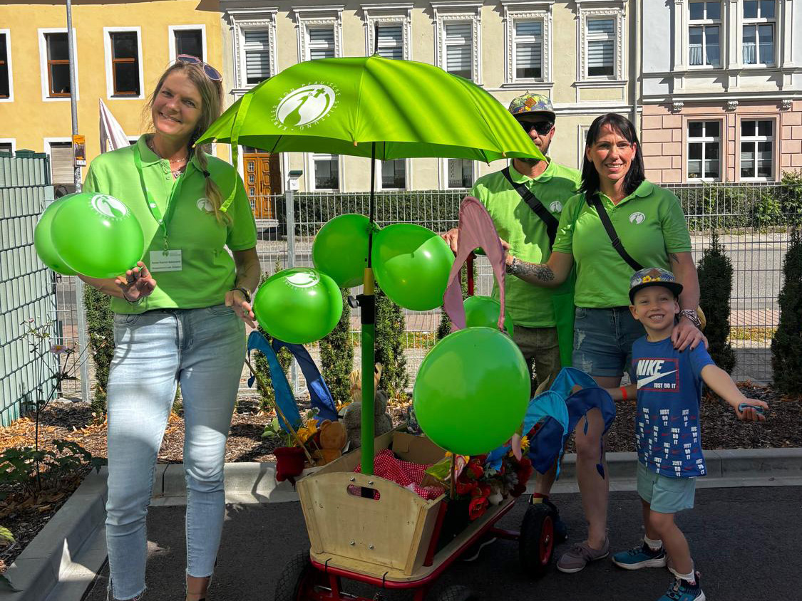 Seite an Seite – und doch mit jeweils eigenem Profil – nutzten wir die Gelegenheit, unseren wichtigen Dienst in der Öffentlichkeit sichtbar zu machen. Unser liebevoll dekorierter Bollerwagen, gestaltet mit Blumen vom Geschäft la Fleur in Hettstedt, zog viele Blicke auf sich. Mit Flyern und kleinen Giveaways – von Gummibärchen über Luftballons bis hin zu Schlüsselbändern und Kugelschreibern – kamen wir mit zahlreichen Interessierten ins Gespräch und konnten so Hemmschwellen abbauen.