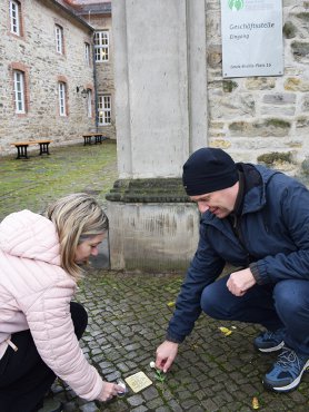 Zum Gedenken an die Novemberpogrome von 1938 wurde der Stolperstein am 9. November von Mitarbeiterinnen und Mitarbeitern der Verwaltung gereinigt und gepflegt.