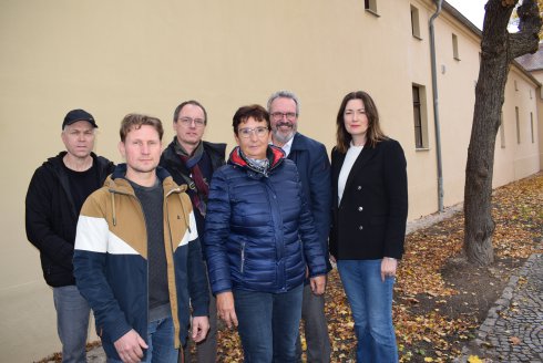 v.l.n.r. Frank Weigel - Techn. Leitung Kanzler von Pfau’sche Stiftung, Michael Winterfeld – Sachbearb. Stadtsanierung, Michael Zimmer – Architekt aus Köthen, Elke Krause – Amtsleiterin Wirtschaftsförderung und Stadtentwicklung, Holger Dittrich – Dezernent Wirtschaftsförderung und Stadtentwicklung, Daniela Schieke – Stiftungsdirektorin Kanzler von Pfau’sche Stiftung